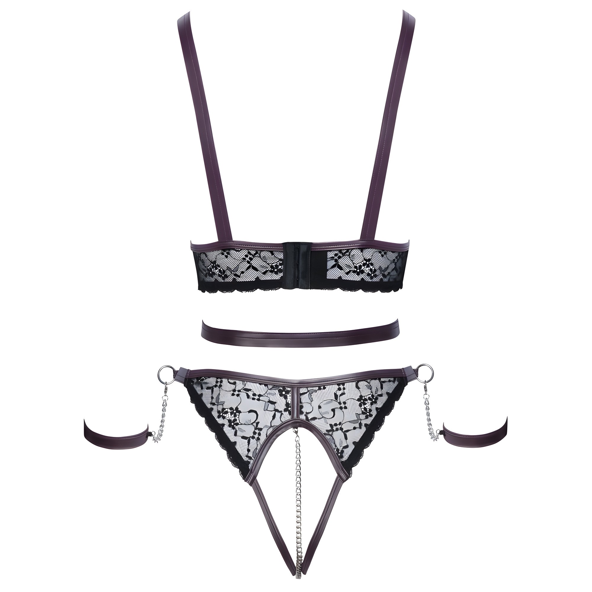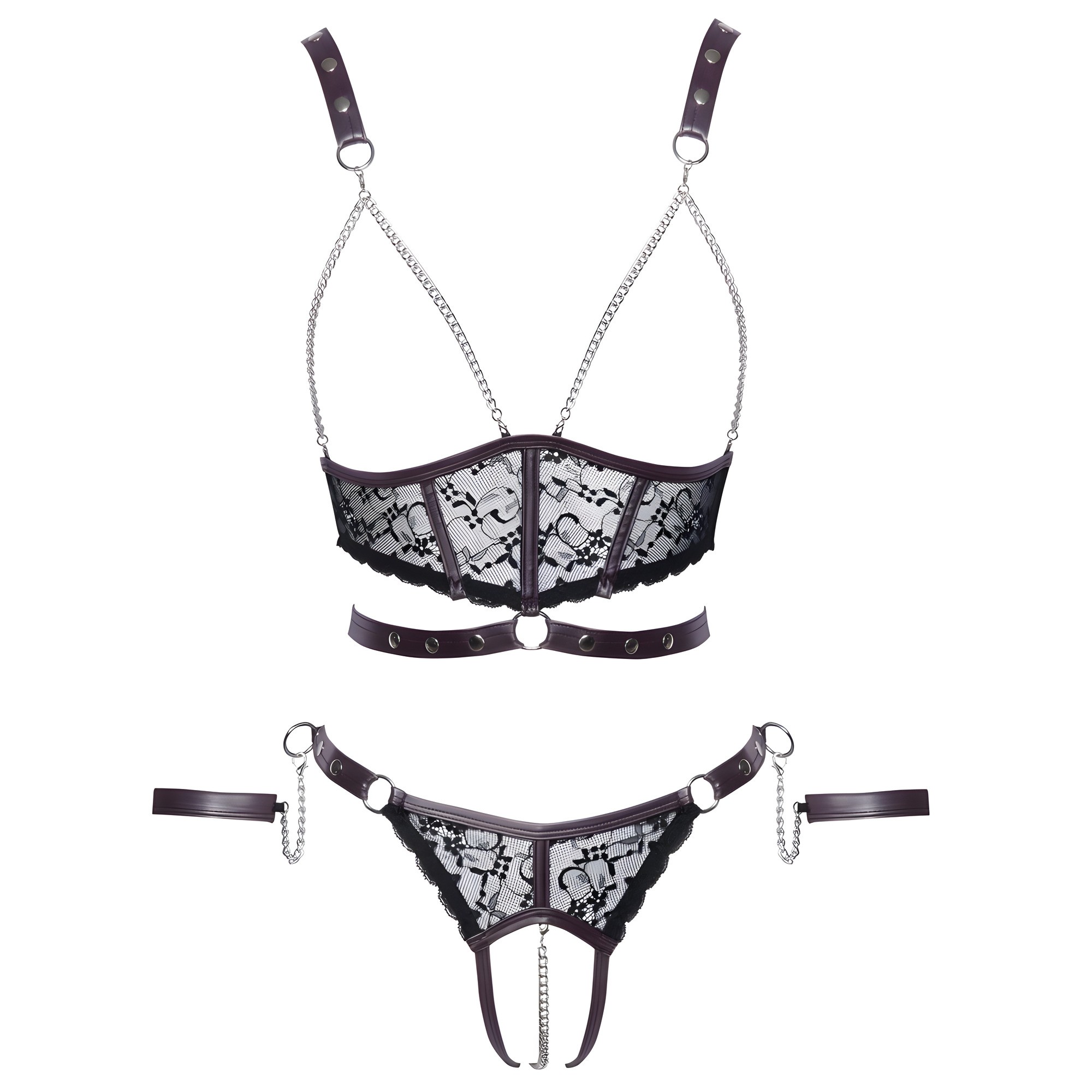 Unleash your inner desires with the Cottelli Lace and Chain Bondage Crotchless Set.
