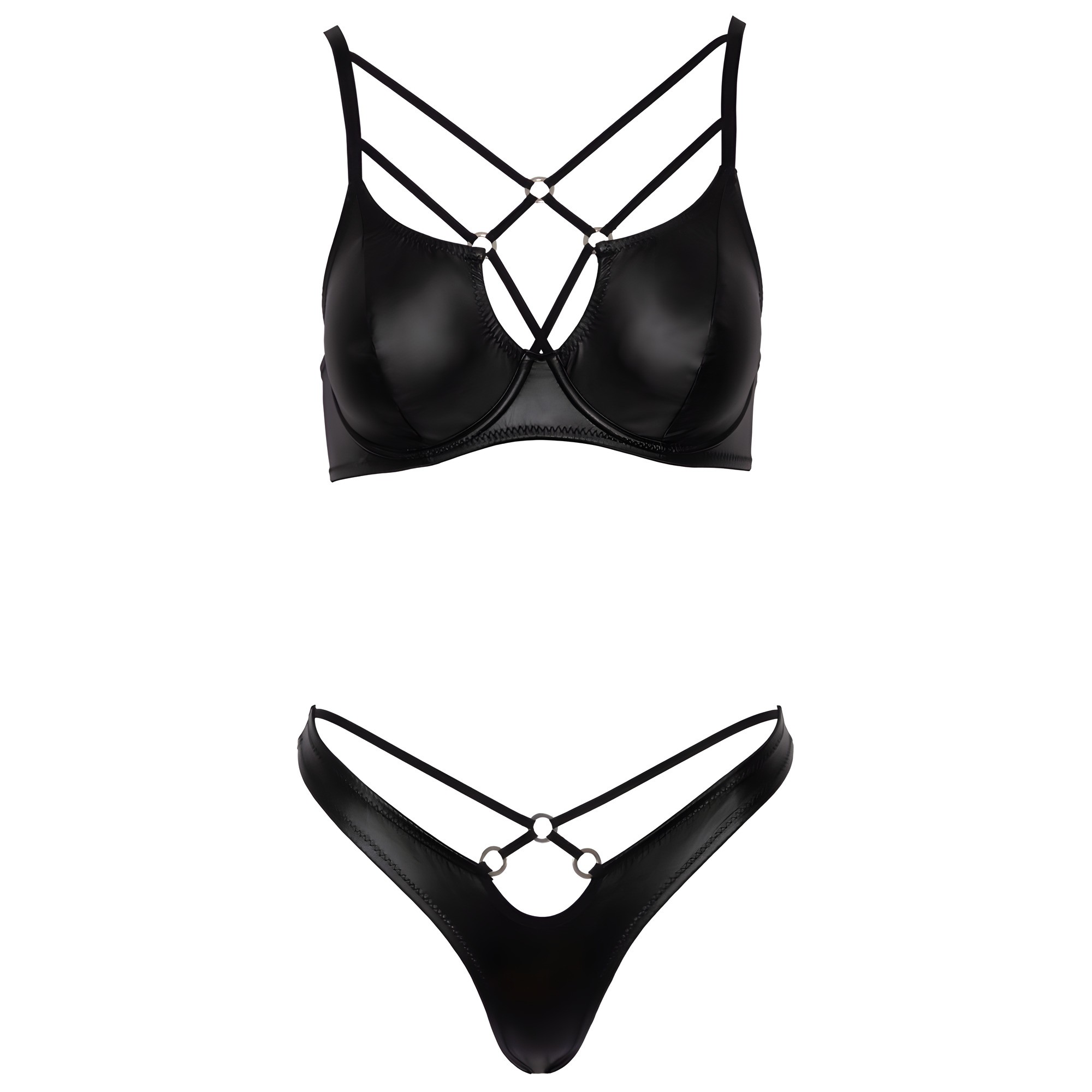 This exquisite set features underwired cups and a stylish Rio string, crafted from beautiful black matte material.