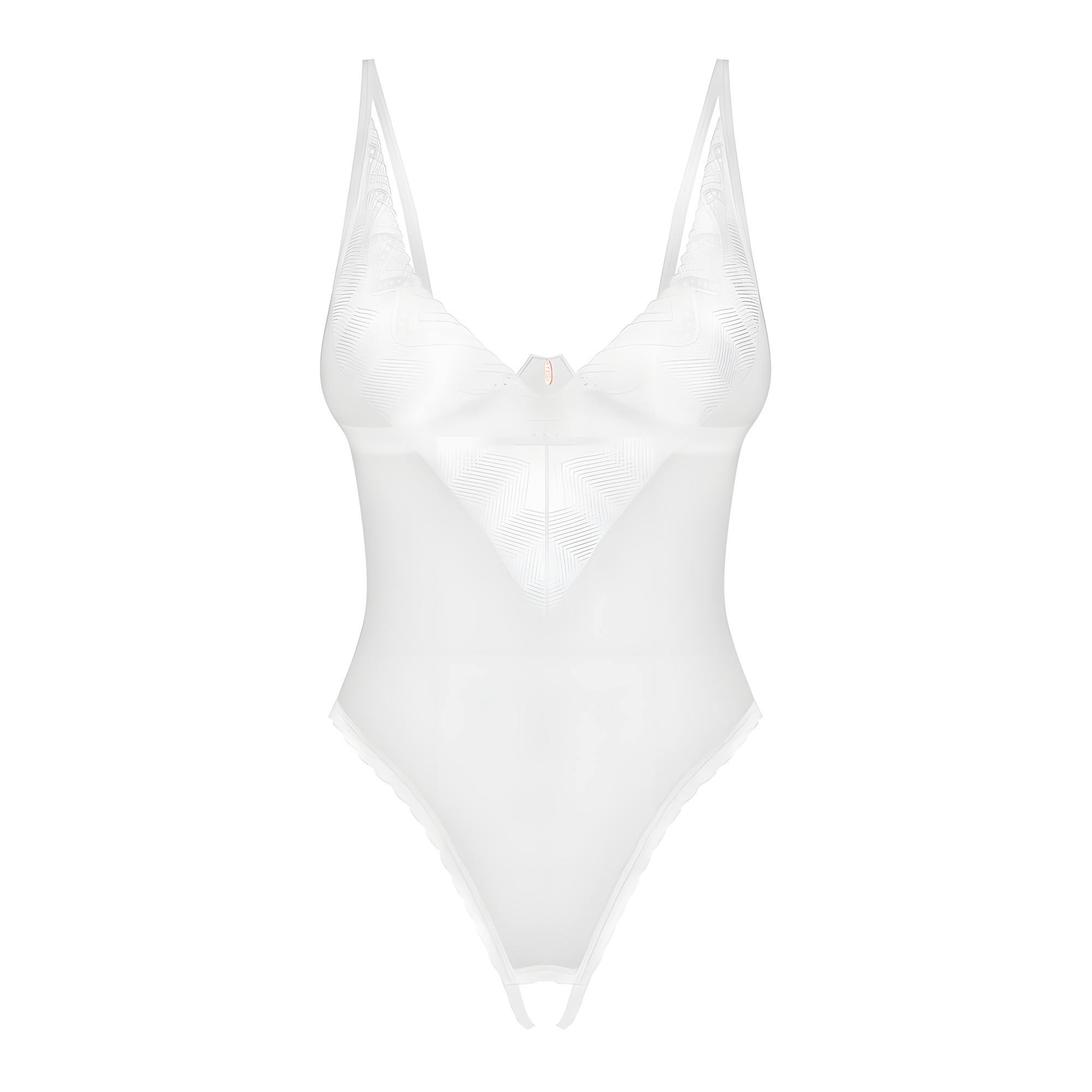 This elegant piece in timeless white features a delicate lace look and soft, stretchy fabric that fits perfectly to your body.