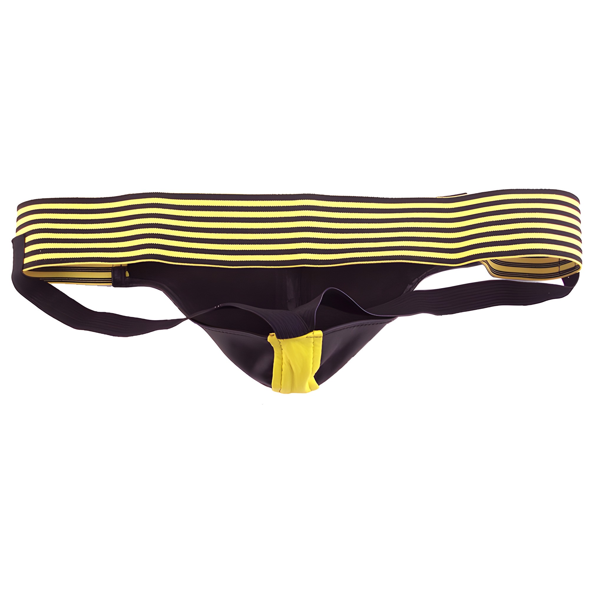 Show off your sporty side with the Rouge Garments Jock in black and yellow.