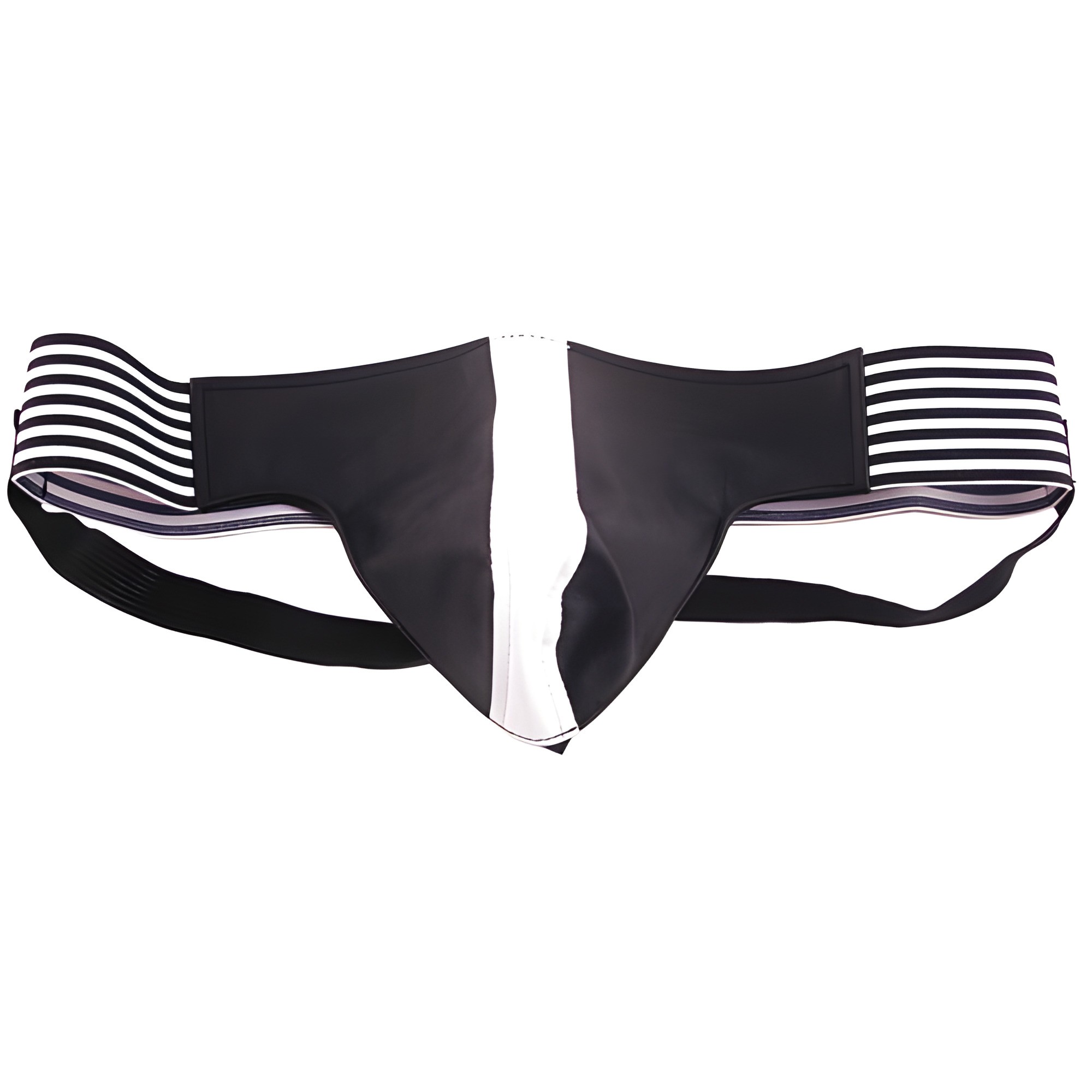 Step up your game with the Rouge Garments Jock, featuring a sporty leather design with a colorful stripe.
