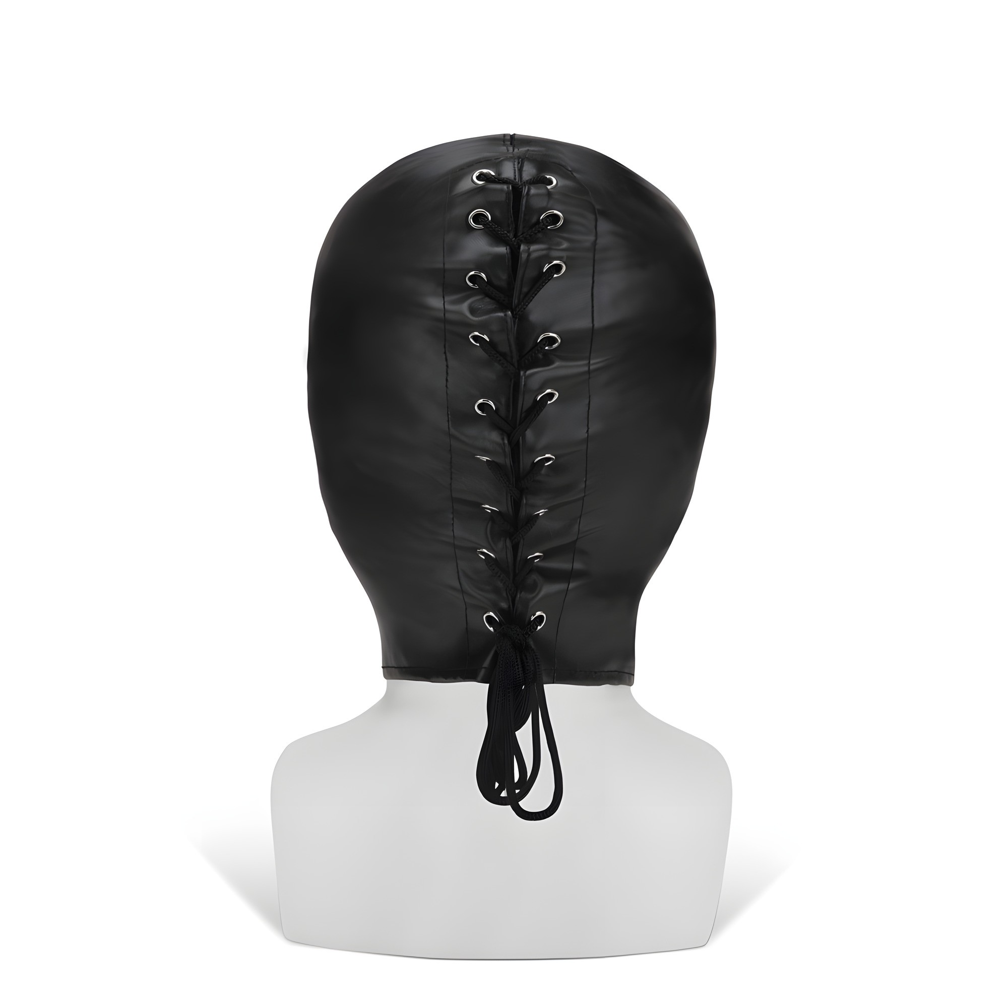 Put your submissive in their place with this completely covering PU leather accessory, removing their identity as you have your way with them.