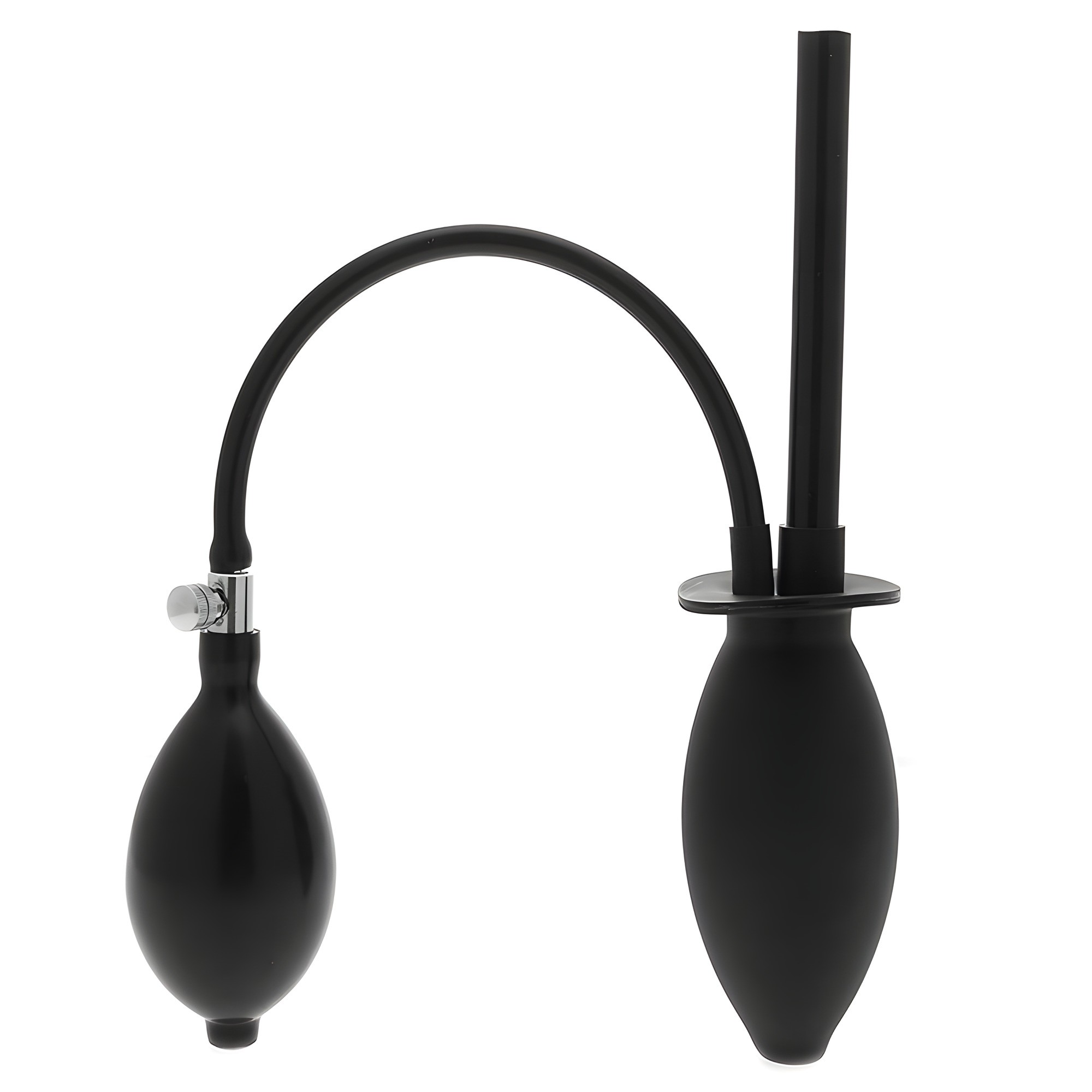 This plug inflates to ensure a secure fit and can be connected to an enema bag for easy fluid administration.
