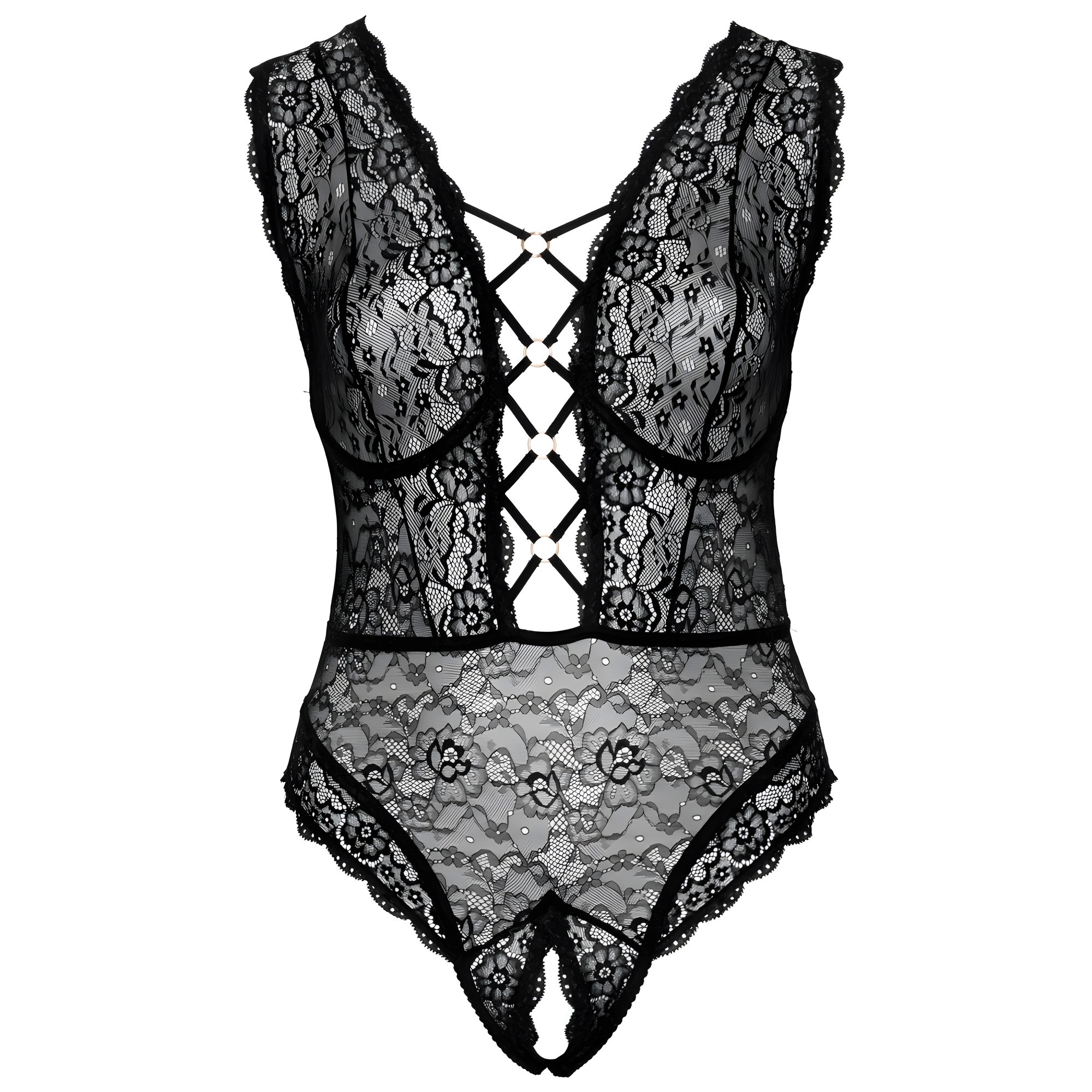 Made from soft stretchy lace, this crotchless body hugs your curves beautifully.
