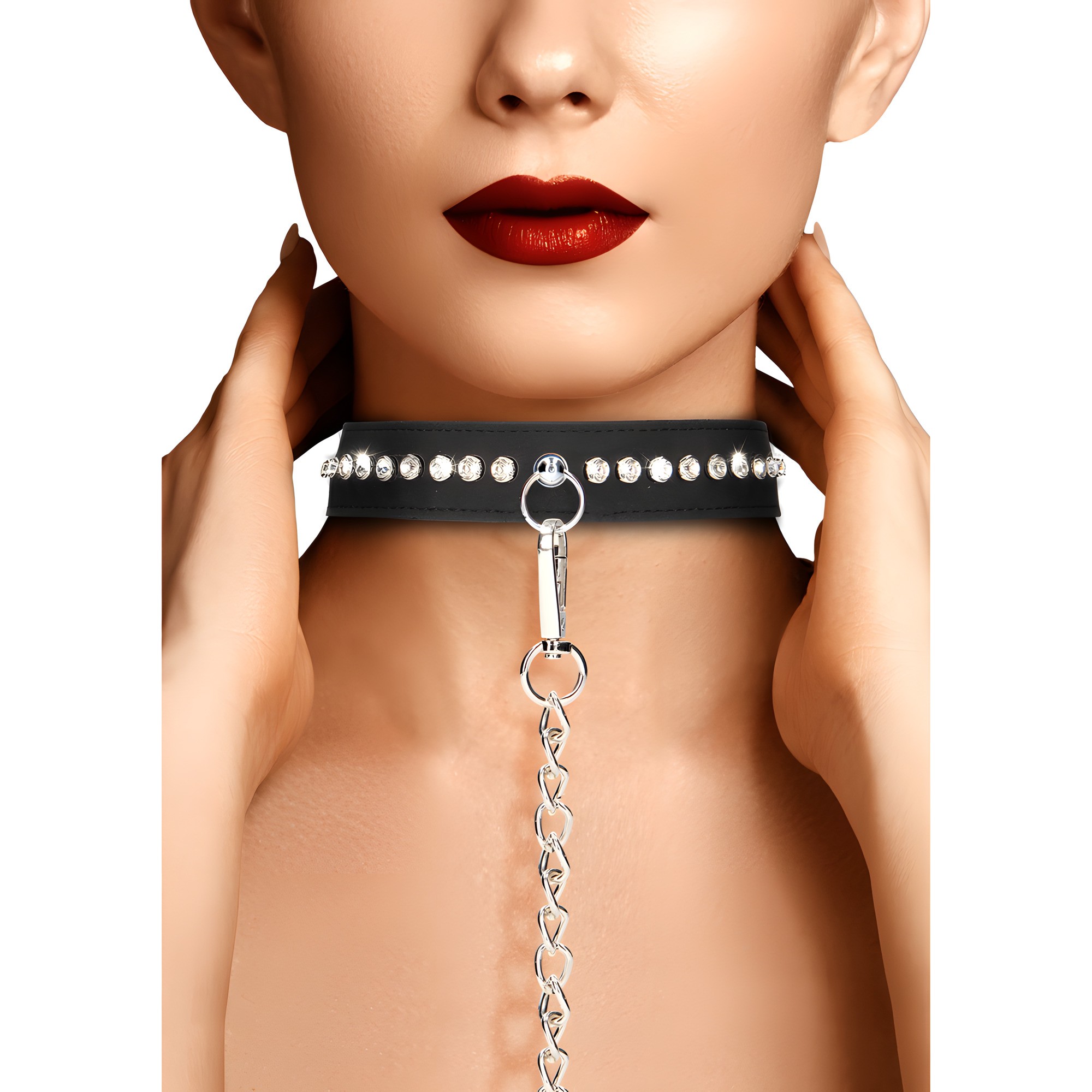 Elevate your BDSM play with the Ouch Diamond Studded Collar With Leash.