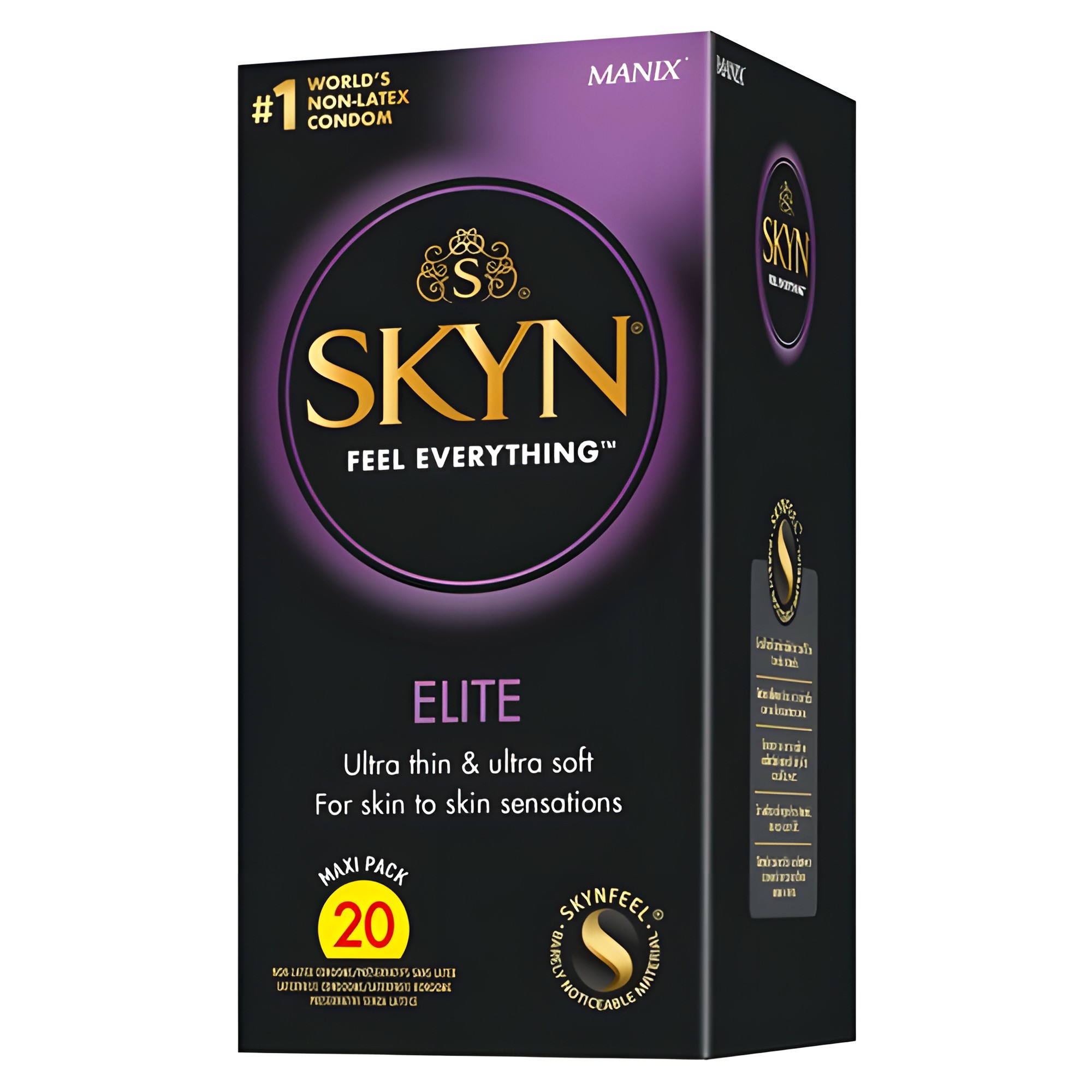 Enjoy a realistic experience with SKYN Elite Condoms, made from ultra-thin polyisoprene.