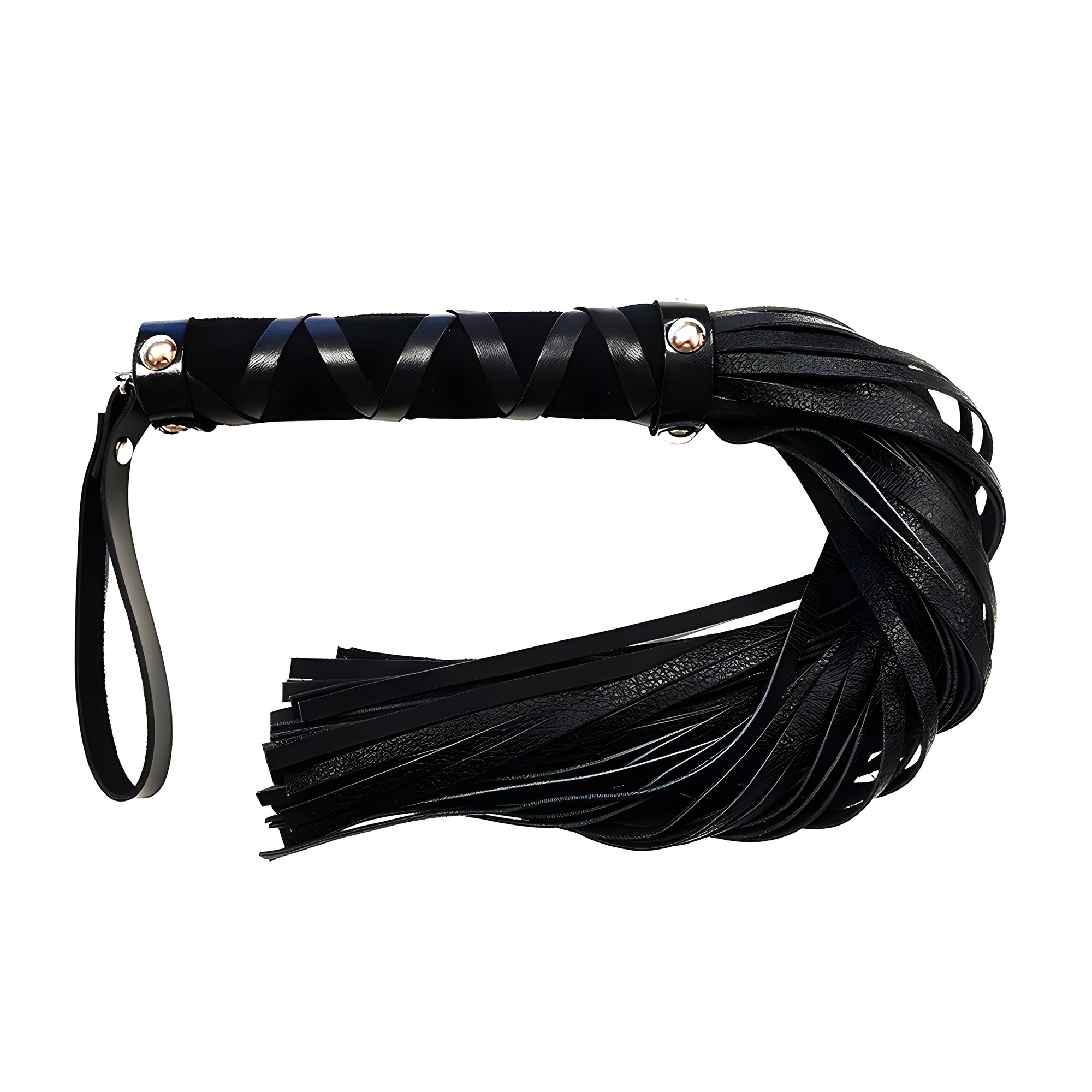 This stylish flogger features studs on the handle for a unique touch.