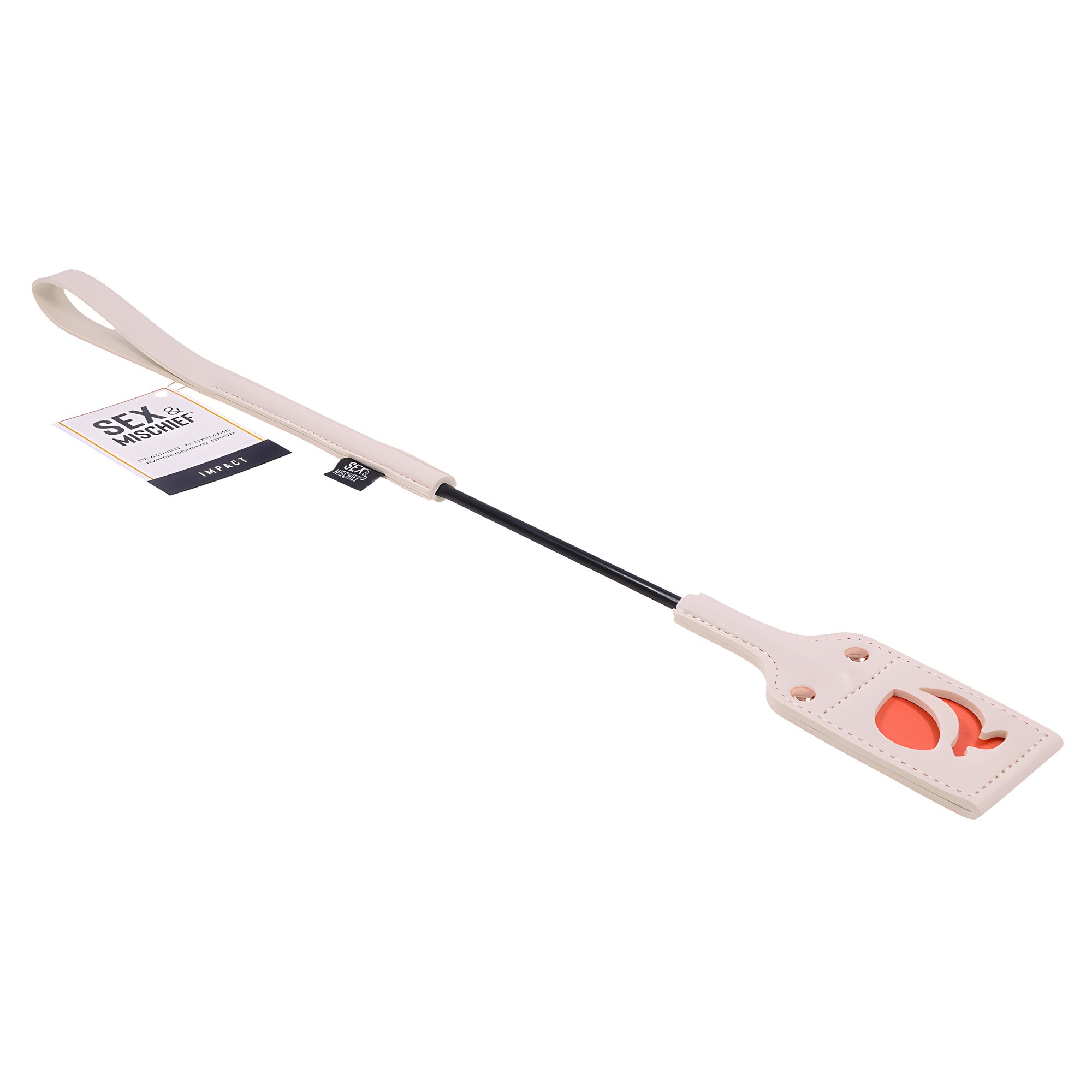This riding crop combines flirtation with fun, featuring a playful peach cutout that leaves a delightful impression.