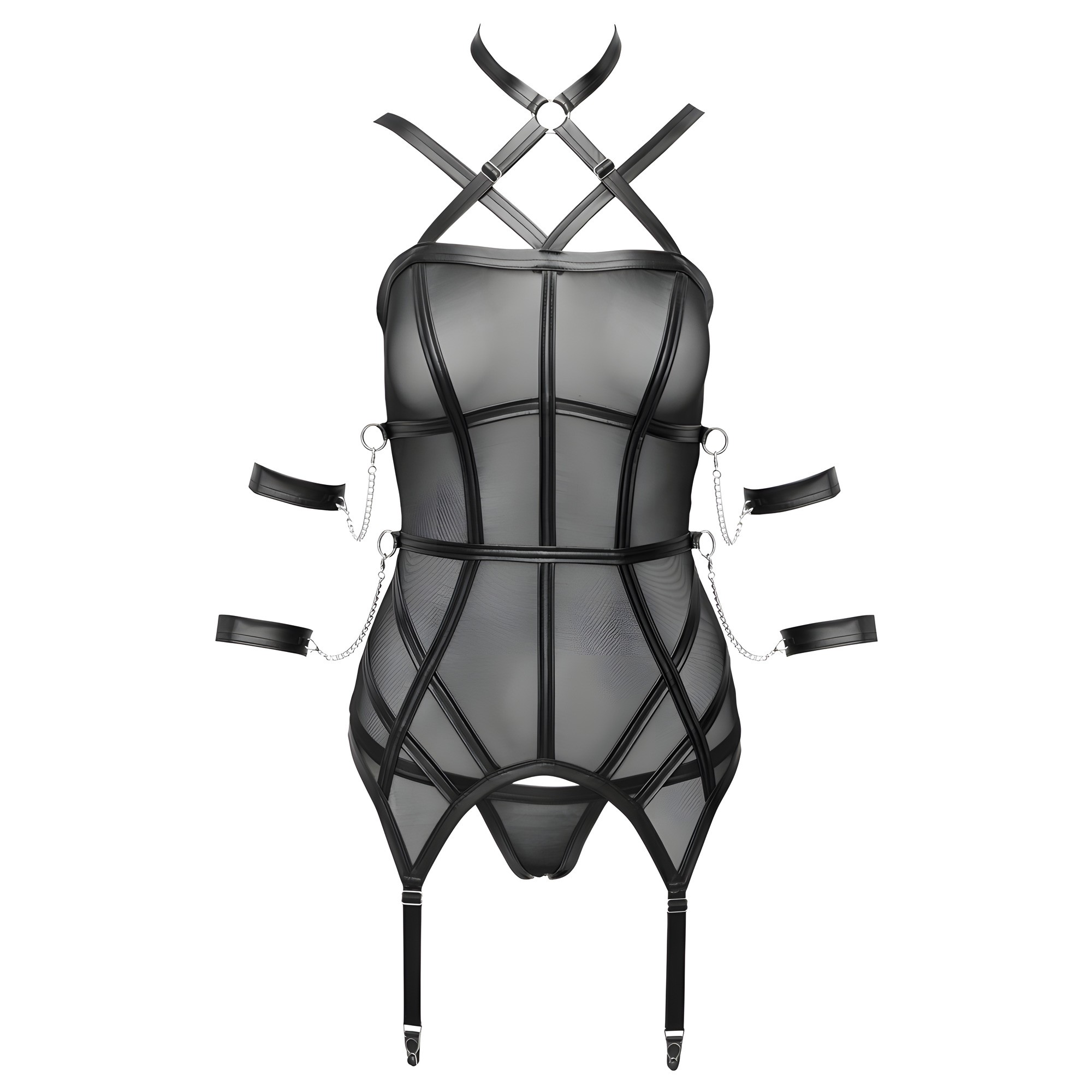 Perfecto para quienes buscan añadir emoción a sus momentos íntimos, este atuendo proporciona un emocionante look de bondage.