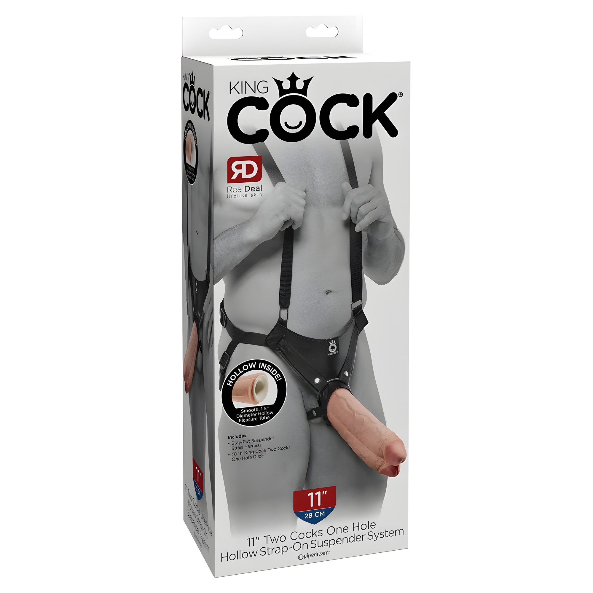 Experimenta la satisfacción definitiva con el King Cock 11 Pulgadas Dos Pene Un Agujero Strap-On Hueco.