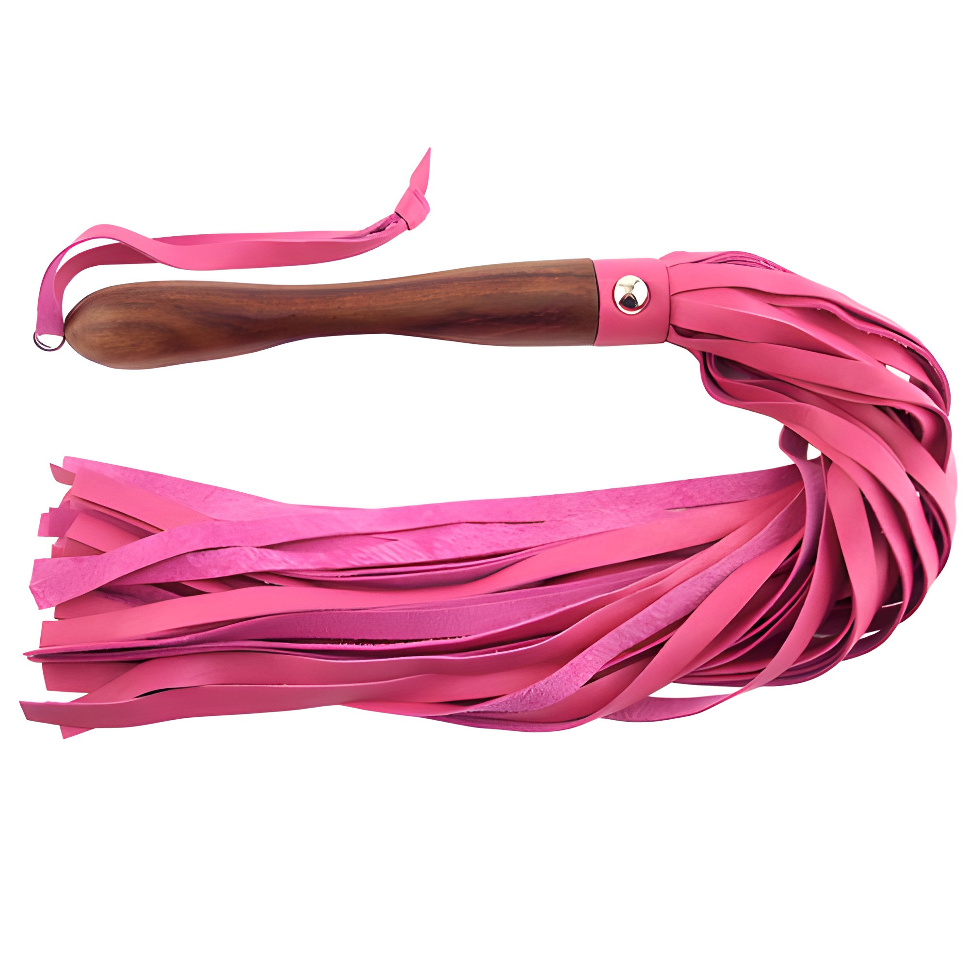 Disfruta de una bondage juguetona con el Flogger de Cuero Rosa con Mango de Madera Rouge Garments.