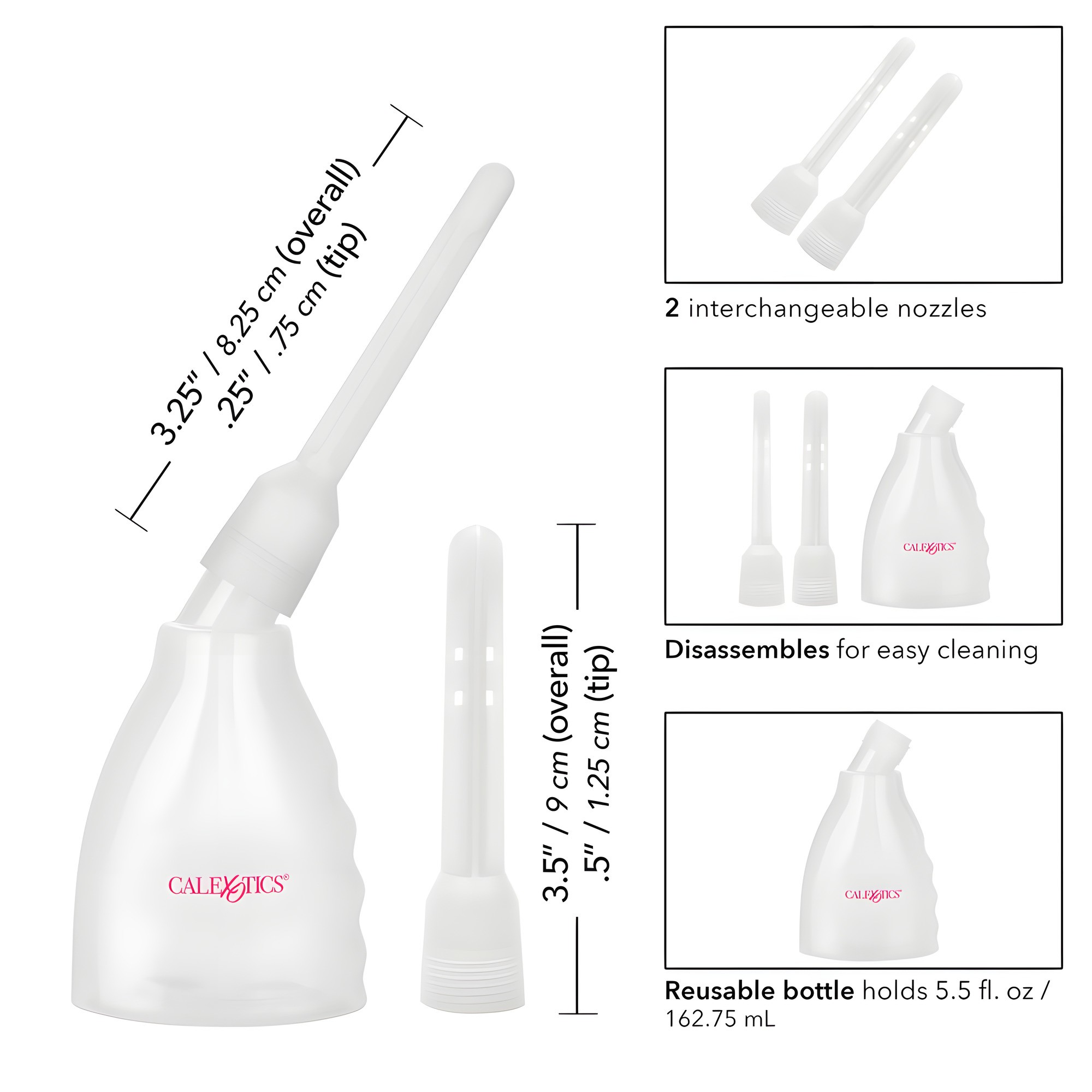 Este sistema de douche anal reutilizable permite una fácil limpieza y cuenta con una botella transparente para medir el agua con precisión.