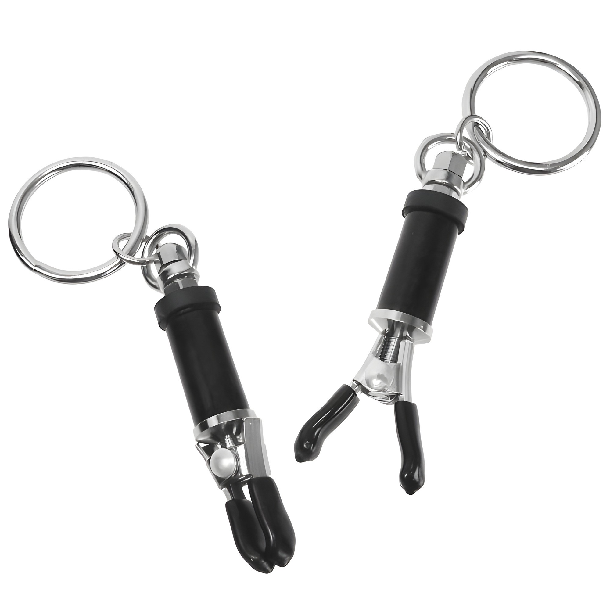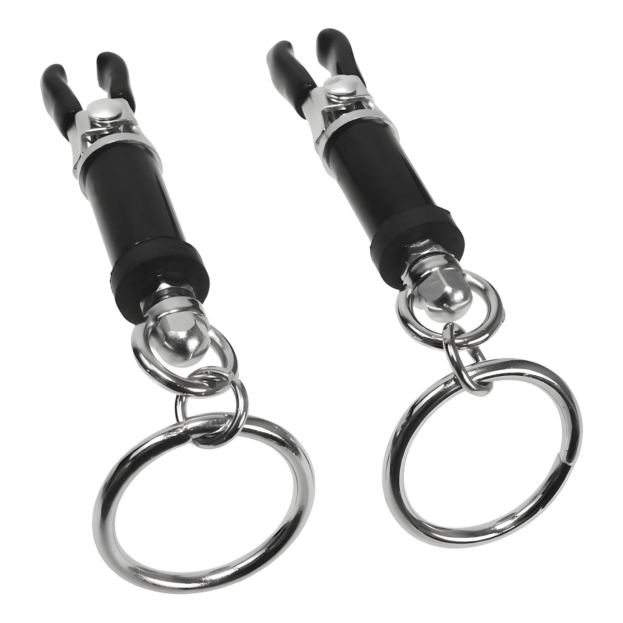 These nipple clamps are a game changer! The pressure is adjustable, which is great for those who are new to this kind of play. They stayed in place during use, and the rubber-coated tips made them comfortable. Perfect for adding a new dimension to our bondage sessions.