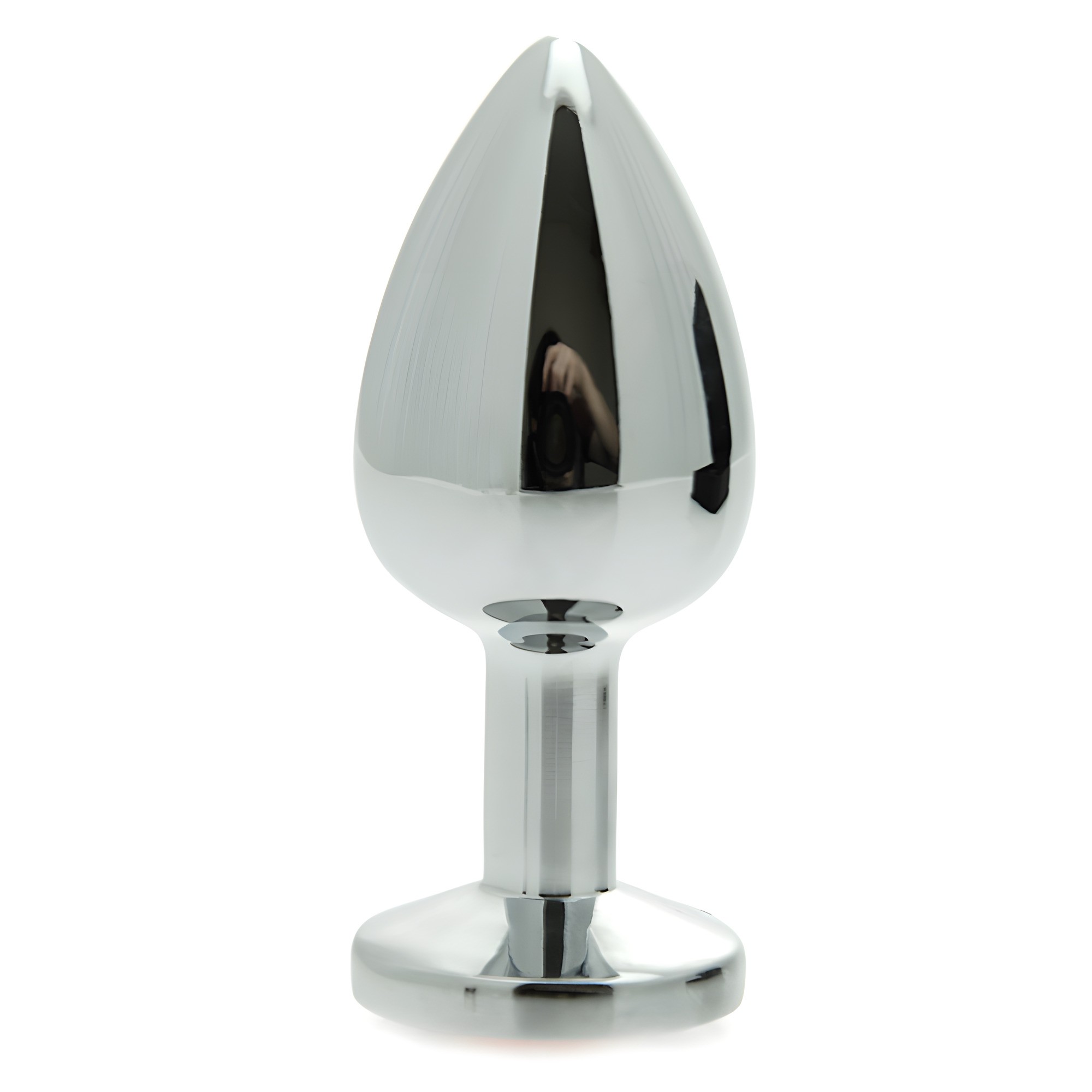 Hecho de acero inoxidable, cuenta con una impresionante gema de corte de vidrio, añadiendo un toque de elegancia a tus momentos íntimos.