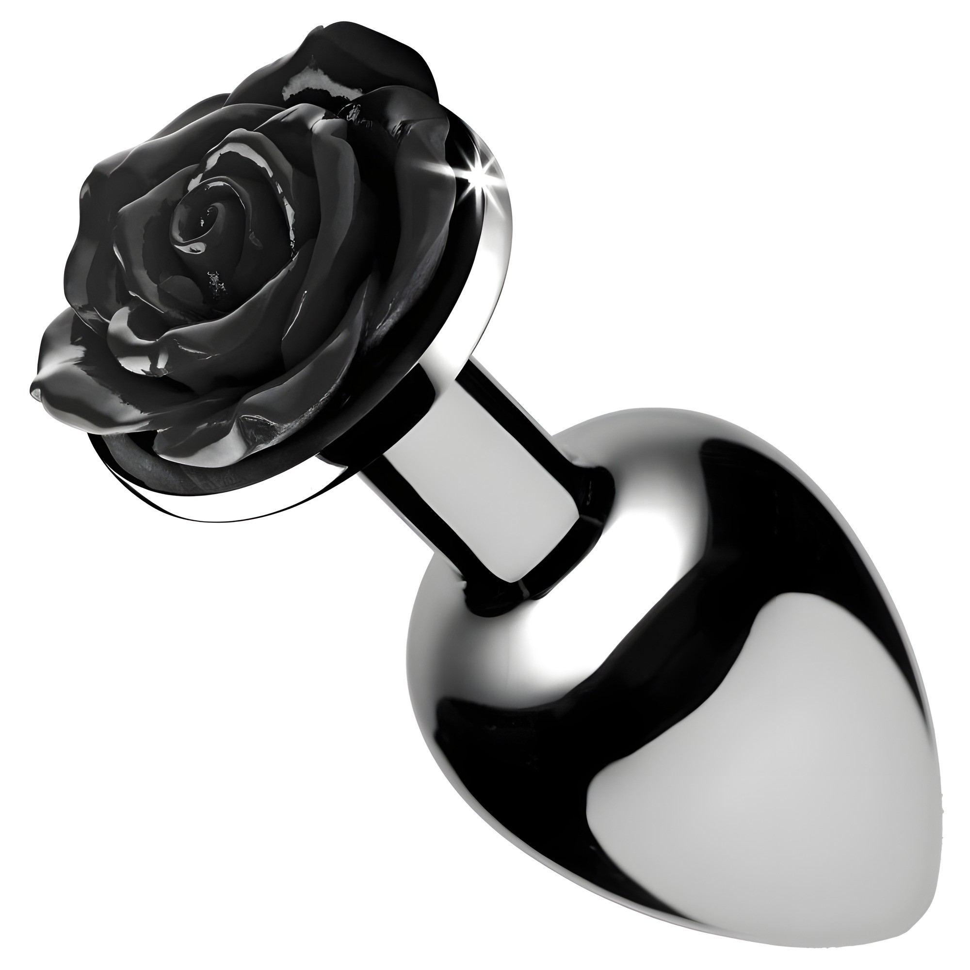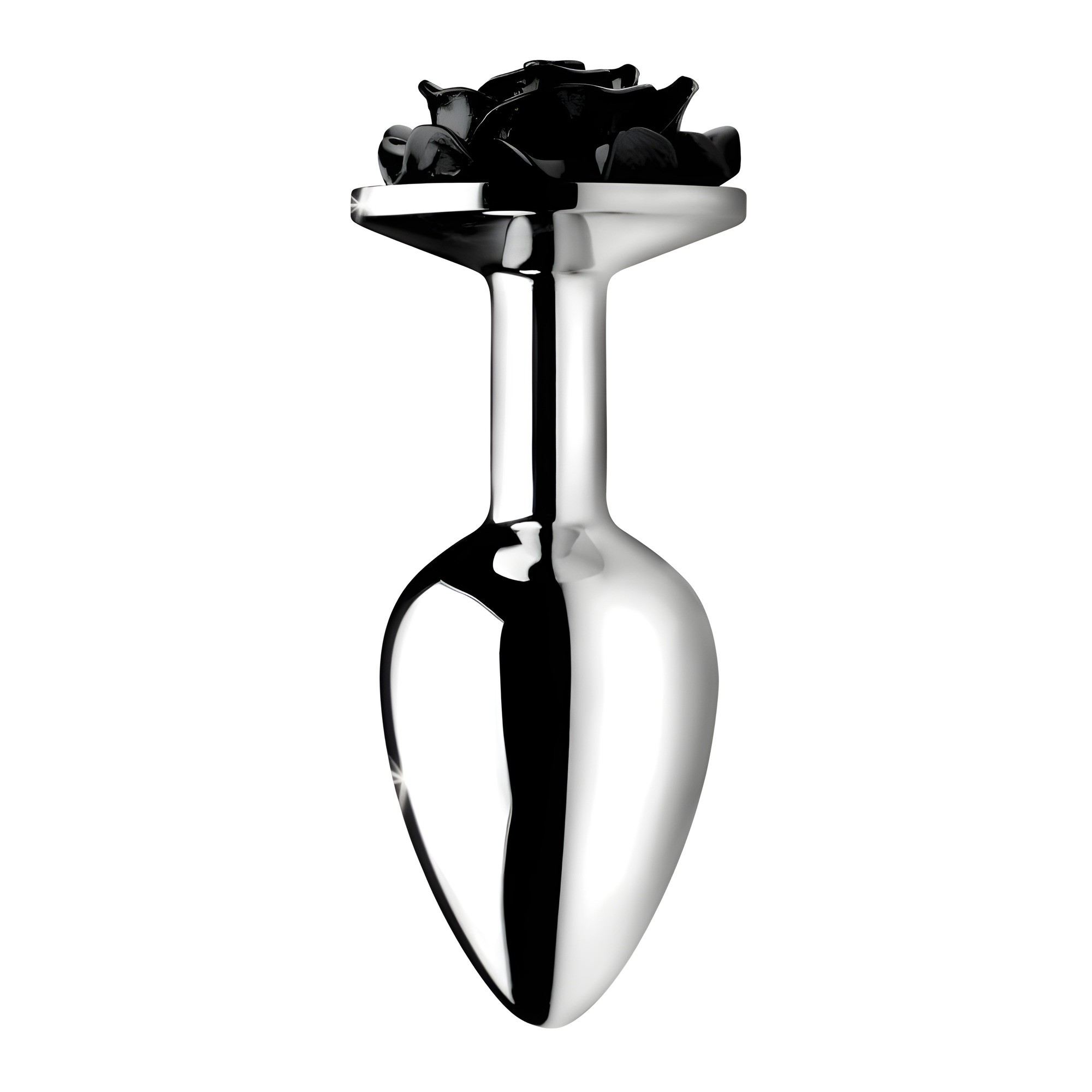 Presentando un acabado metálico suave y una hermosa rosa negra, este plug es tanto impresionante como funcional.