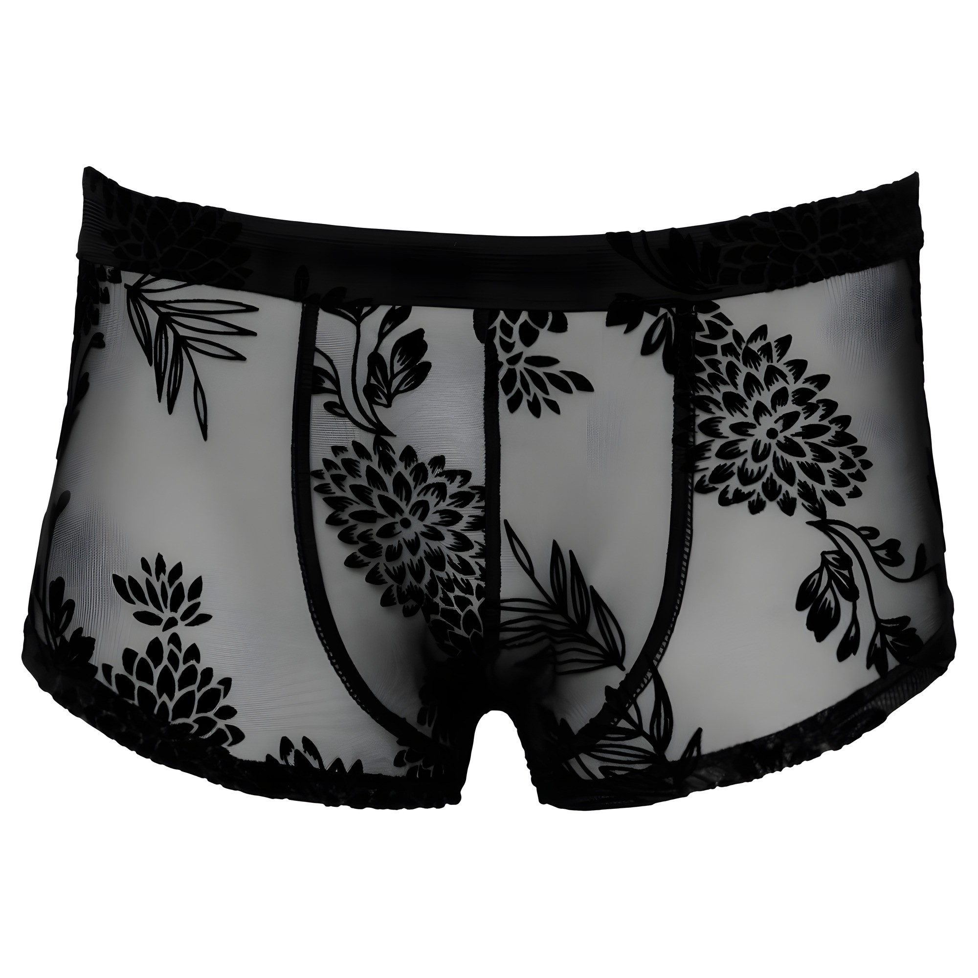 Adéntrate en la elegancia sensual con los Pantalones Transparentes de Encaje Floral Noir.