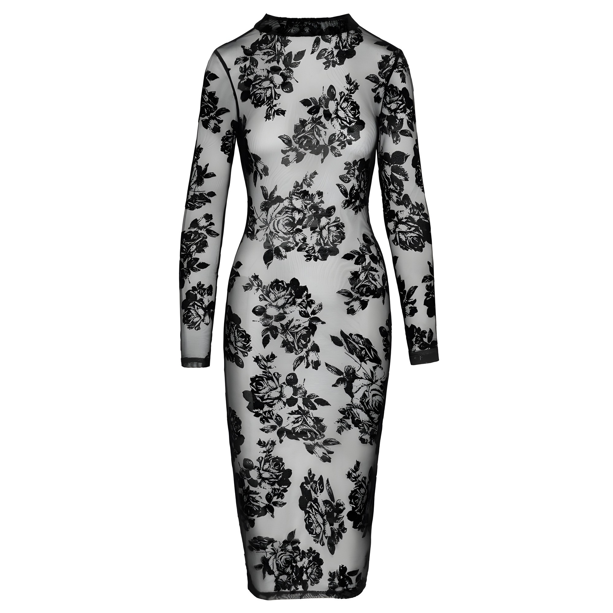 Eleva tu estilo con el Vestido Transparente Floral Ajustado Noir.