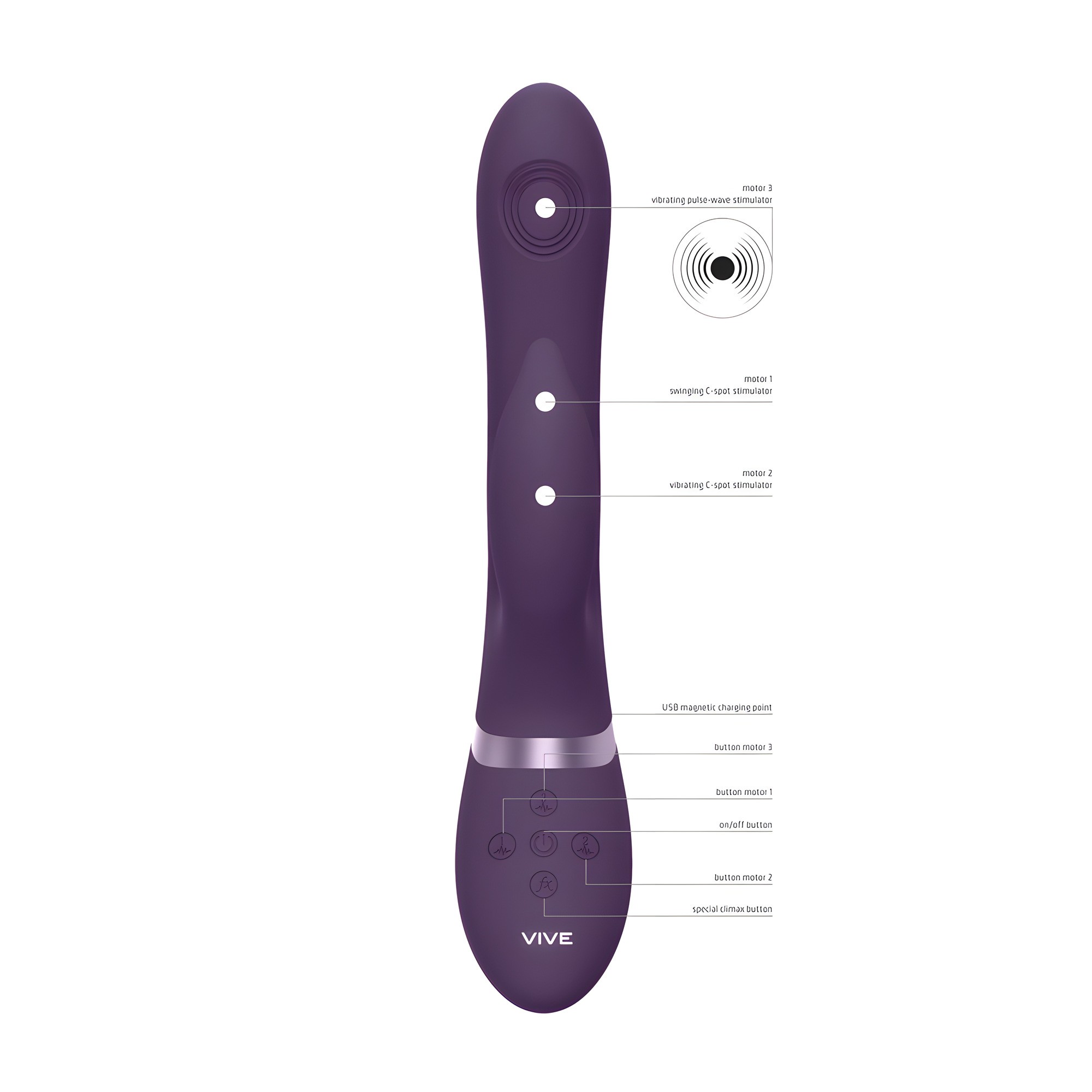 Descubre un placer intenso con el Vibrador G-Spot Vive Aimi Con Onda Pulsante Y Vibración Morado.