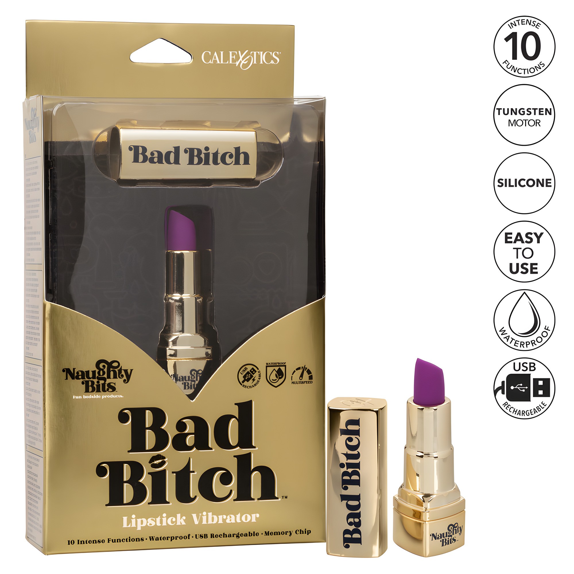 Desata tus deseos con el Vibrador De Labios Recargable Naughty Bits Bad Bitch.